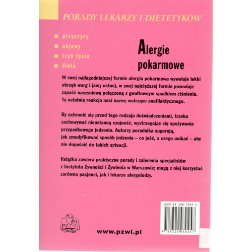 Alergie pokarmowe : porady lekarzy i dietetyków / Mirosław Jarosz, Jan Dzieniszewski ; współaut. Magdalena Nalewczyńska [et al.]..  - Warszawa : Wydaw. Lekarskie PZWL, cop. 2004. - 226 s. ; 21 cm.